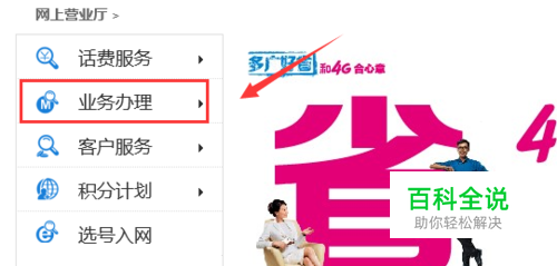 登录之后,在顶端选择【网上营业厅】就会下拉出【话费服务】、【业务办理】、【积分商城】和【促销优惠】,因为我们要取消呼叫转移是属于业务方面的,所以点击【业务办理】