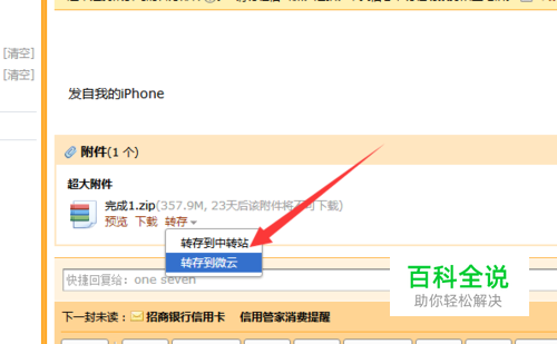 在邮件的下方,有显示附件,如果在有效期内是可以进行下载查看的,点击右侧的转存,如图所示。