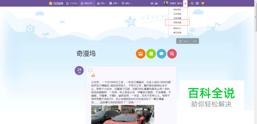 首先打开空间之后,将鼠标放在页面右上角的设置,可以看到弹出一个下拉列表。