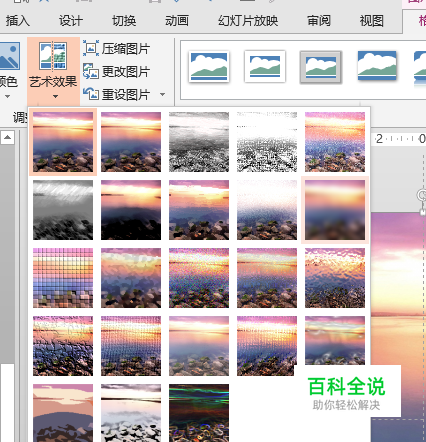 先复制一张留作下面的步骤用。双击一张图片,选择格式里的艺术效果,选择虚化,我的在第二排第三个。或者点击更多艺术效果。在选择窗格中改变虚化半径为100。