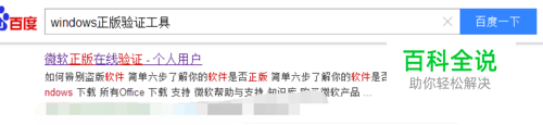 打开电脑 “百度搜索”输入 【windows正版验证工具】点击搜索,在列表中点击进入 windows官方网站 请安装下图操作,防止进入假网站