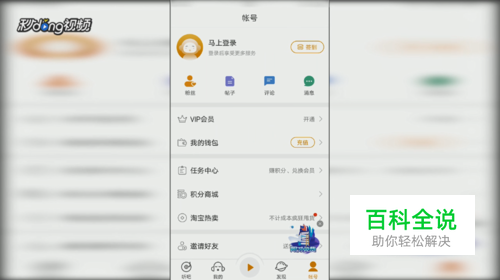 在出现的界面中,找到并点击“账号”,点击“马上登录”。