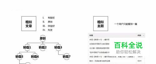 第一步:消重。消重有两方面:一是文章相似,二是主题相似。 头条号在处理时,以是否有版权、原创标识、体验好坏、发布时间作为准判断原创的标准,因此,有版权、原创标识的、发布早和体验好的会被认为是原创,反之为伪原创或者转载,甚至抄袭。 出现相似主题,头条号为了提高用户体验度,它会让用户只看到该主题中的一篇,以防重复,如下图