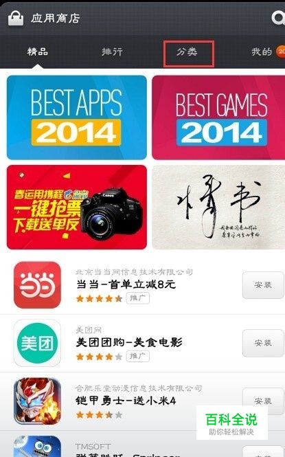下载软件的应用,启动后,点击分类。