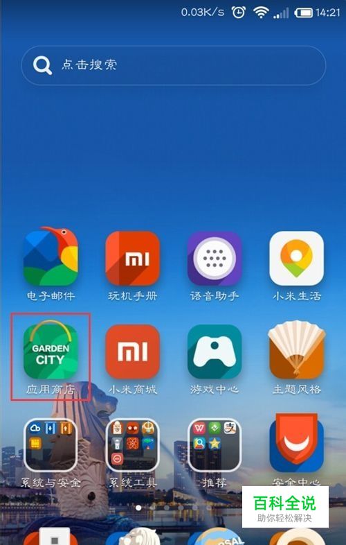这里可以看到有一个小小放大镜,点击一下,然后可以快捷的搜寻你的app应用,这里 输入“cad手机看图”。