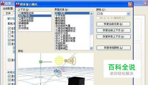 做到这里,工作基本上已经完成了,但是在先前还疏漏了一个地方,就是应当在cad中将它的背景色“黑色”调成“白色”,通过点击autocad中的“工具”菜单中的“选项”,打开“显示”卡,改之。 为了显示的更加清晰,将cad图中的标注线也更换成黑色,不然打印出的效果很淡,标注数字可以不按标准制图中的规定,适当的大一些,从而使得最终的插入图片清晰。
