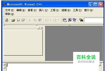 进入Visual C++ 6.0集成环境: 双击桌面上的快捷图标,进入Visual C++ 6.0集成环境,屏幕上出现Visual C++ 6.0的主窗口。在主窗口的顶部是主菜单栏,其中包括9个菜单项:文件、编辑、查看、插入、工程、组建、工具、窗口、帮助。左侧是项目工作区窗口,右侧是程序编辑窗口。