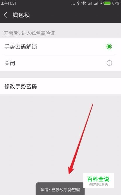 输入正确的手势密码后,我们就可以为微信钱包设置好钱包锁了。以后要打开微信钱包,只有输入正确的钱包锁才可以进入 。