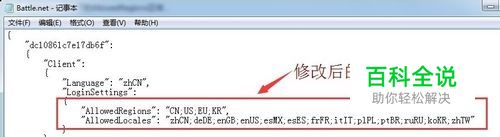 将图中所示位置处"AllowedRegions"和"AllowedLocales"两排修改成以下文字: "AllowedRegions": "CN;US;EU;KR", "AllowedLocales": "zhCN;deDE;enGB;enUS;esMX;esES;frFR;itIT;plPL;ptBR;ruRU;koKR;zhTW" 之后Ctrl+S保存文件,再打开战网时你会发现已经不一样了.