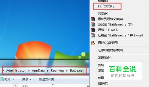 在文件夹Battle.net下的文件Battle.net上打开右键菜单选择"打开方式"