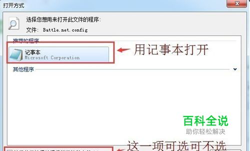 选择"记事本"打开Battle.net,下面的始终用此程序打开不用管它都可以的.
