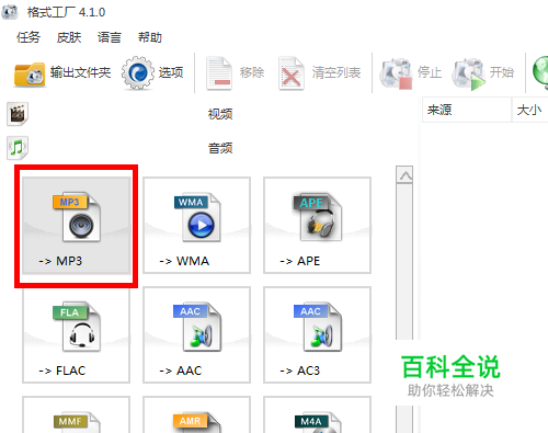 打开下载并安装好的格式工厂软件,鼠标点击MP3如下图