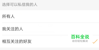 我们就可以进行更改,设置为【相互关注的人】才可以互相私信,私信相对较少些,如图。