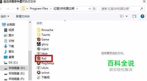 点击右上角“设置”,对红警的执行位置进行选择与保存,选择“Ra2.exe”,这样就可以运行了。