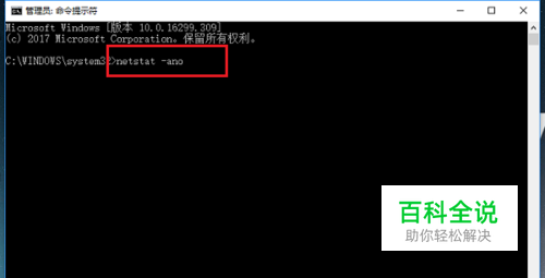 第二步进去命令提示符之后,输入netstat -ano命令,如下图所示: