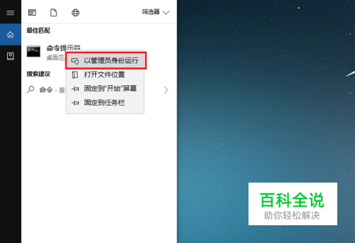 第一步在win10系统任务栏搜索框中输入命令,搜索到命令提示符之后,鼠标右键选择以管理员身份运行,如下图所示:
