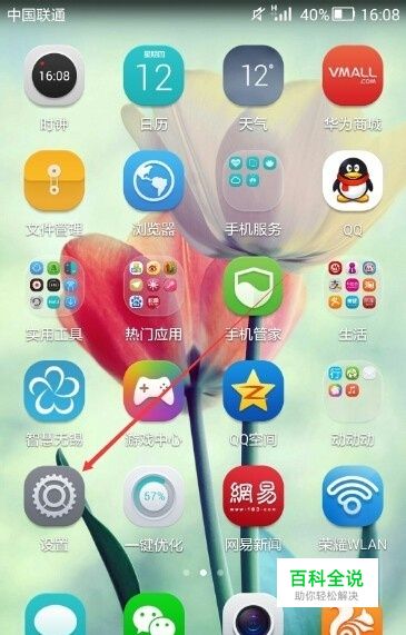 在华为荣耀6手机主桌面上点击设置图标,如下图所示。
