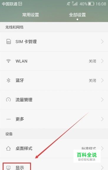 进入荣耀6的常用设置界面后,点击下方的“显示”按钮,如下图所示。