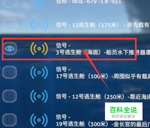 然后将我们的位置信息打开,将三号逃生舱的位置打开。然后出发找到三号逃生舱。