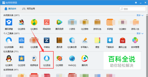 点开,弹出“应用管理器”,在“腾讯软件”下拉“社交通讯类”里,有个“QQ足迹”。