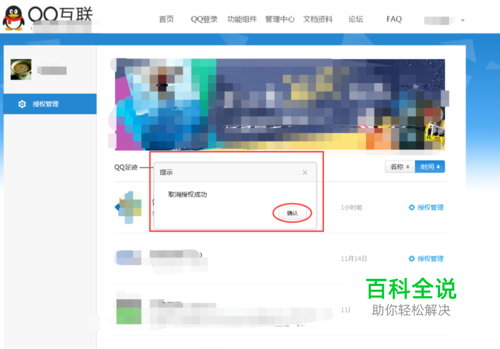 弹出“QQ互联”网址,可以设置“权限管理”。可以看到自己这个账号一共绑定了多少个网站,还可以看到绑定的日期。
