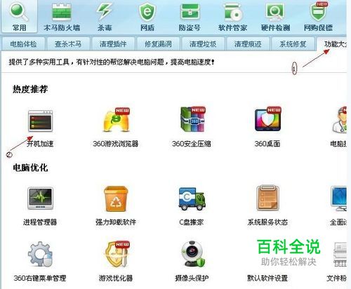 使用电脑优化软件对电脑一些启动项进行优化,上面第一条讲到,电脑开机启动程序过多也会导致开机启动本地连接慢。新手朋友建议使用360安全卫士,或优化大师软件对开机启动项进行优化一下。360安全卫士使用指南如下图: