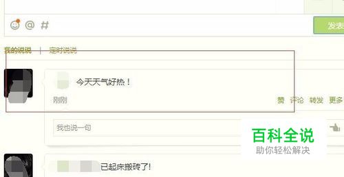 设置好后,就可以点击右侧的发表就完成了说说的发布了。然后就会出现下面的自己发布的说说了,这样就将自己的说说发布出来了。