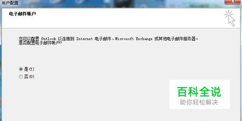 询问“是否配置电子邮件账户”,选择“是”,单击“下一步”继续