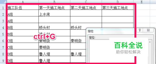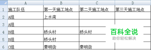 一、如图,因施工进度需要,我们要集合所有施工小组在上水湾施工,B、C、D列的空白都要输入上水湾。