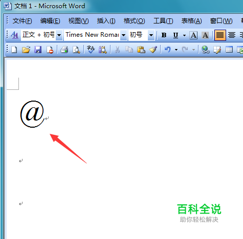 打开word后,将光标在输入区里定位,然后按下shift+键盘上的2键,注意这个数字键不是小键盘上的2键,这样我们就打出埃特符号了,如图所示: