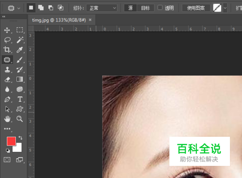 然后再选中修复画布工具,对眼睛部分进行细致修饰