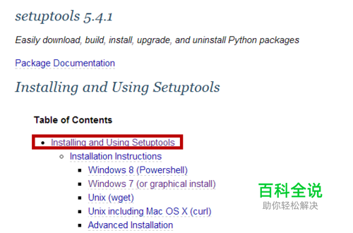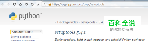 进入python的官网下载工具,网址如下:https://pypi.python.org/pypi/setuptools