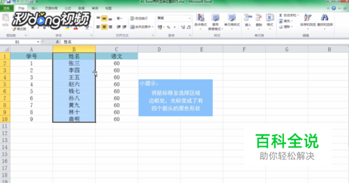 将鼠标移至选择区域边框处,光标变成了有四个箭头的黑色形状