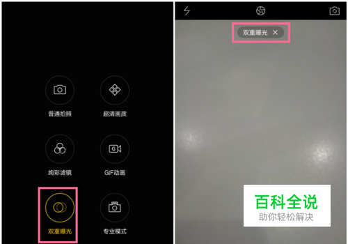 2、选择“双重曝光”--进入拍照界面后,点击下方的拍照按钮进行拍照,会提示再拍一次,再点击一次拍照即可完成。