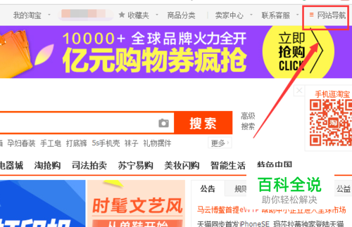 首先去淘宝官方网站首页,右上角点击网站导航。(因为淘宝助理和千牛等软件比较特殊,尽量不用再其他的地方下载,省的出现问题。)