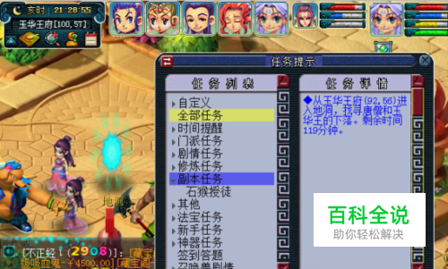首先介绍副本,副本是从山贼头目(大唐境外94,90)进入,条件是≥60级,5人副本。进入副本之后,由于是分支二,首先要从玉华王府进入地洞。