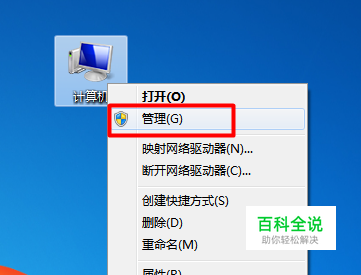 右击“计算机”,从弹出的菜单中选择“管理”项。