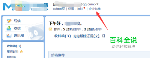 进入QQ邮箱后,也可以点击上部的企业邮箱切换到企业邮箱。