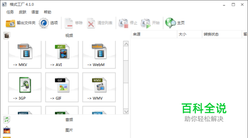 在桌面上双击格式工厂的快捷图标,打开格式工厂这款软件,进入其操作界面如图所示: