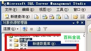 打开SQL Server Management Studio并登录,(如果你的桌面没有快捷键,就在开始程序里面找一下) 打开之后会出现这个界面,右键点击数据库,如图: