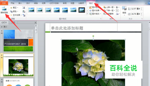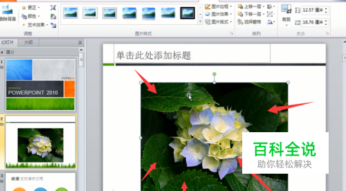 比如,下面的图片,我们只需要花,而不需要绿叶,也就是要将花的背景去掉,那么可以通过PPT的删除背景功能来完成。