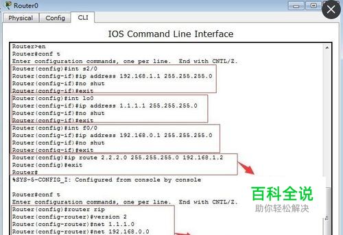对路由器router0上设置f0/0的ip和s2/0的ip和环回口的ip,以及静态路由的配置。和rip协议.环回接口代表不同的网络。