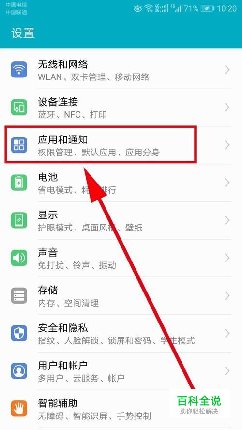 在打开的列表中找到“应用和通知”选项,点击打开它