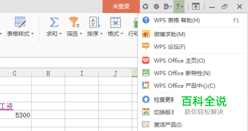 弹出了下拉菜单选中为 关于wps表格的选项,来进行查看帮助的信息。