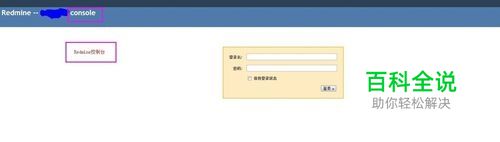 在浏览器输入配置的URL,点击回车进入redmine登录界面,在界面的左上方显示“Redmine Console”就表示进入了redmine的控制台,输入配置的用户名和密码,点击登录。”