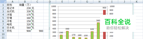 此时手机那一项会出现一个咖啡色的柱形,选中右击,设置数据系列格式。在系列选项中选择,将系列绘制在次坐标轴,确定。