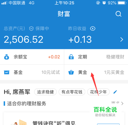 打开财富页面后,可以看到有【黄金】,我们点击它