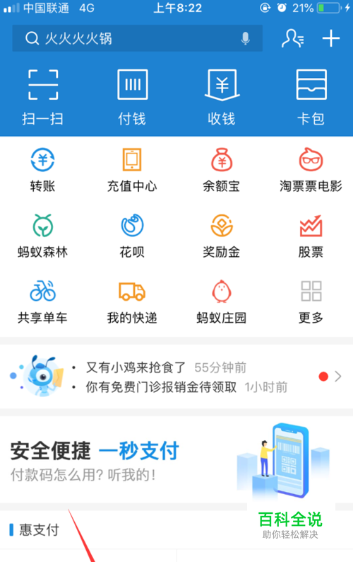 首先,我们点击打开支付宝首页,然后点击页面下方的【财富】,如图所示