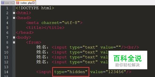 这时我们只需要将第5个的type属性值改为“ type="hidden" ”。如图