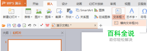 在wps中插入文本框。打开wps,点击上方工具栏中的插入,在插入下出现的一行工具中点击文本框——横向文本框,把光标放到页面中,按住鼠标左键,拖动画出文本框,并在文本框中输入文字。